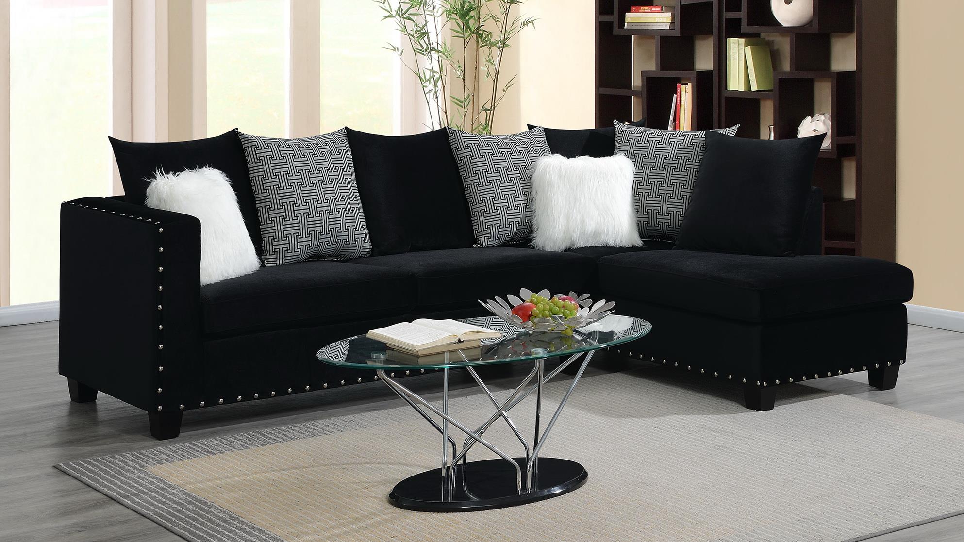 This sectional delivers plush comfort with a high-fashion edge. The contrast pillows and nailhead trim elevate it into a luxurious yet inviting focal point for any living space.